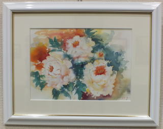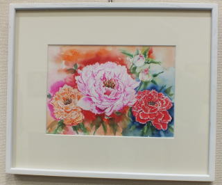 | さらには、花を中心に据えた 油彩と水彩画。 筆のタッチが力強い油彩 柔らかな色合いの水彩 どちらの味も素敵だ。 |