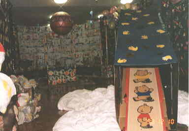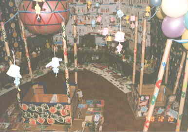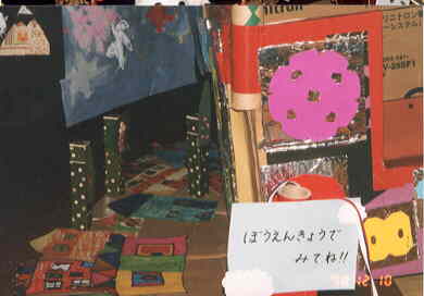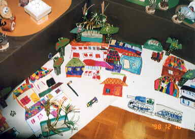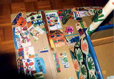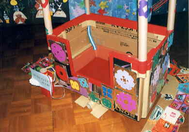 | カタカタと揺れるようになっています。 | 気球の下には、みんなで作った町並みが。 |