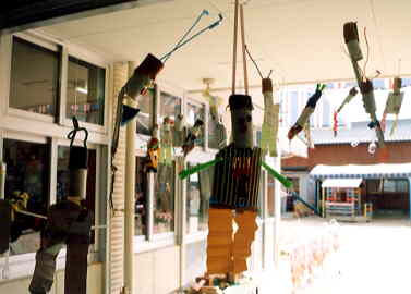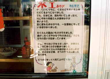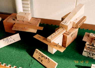 | ようこそ作品展へ! | やっていくうちに、釘なども上手に打てるようになってきました。 でも、時には指を叩いてしまったり。 特に今年の子は、豪快な子が多いようで、 目に涙をためながら作っている子も。 たくさんのおもいしろい作品が出来ました。 女の子の作品は、二階テラスに飾ってあります。 |
