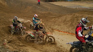 [いなべエンデューロ最終戦]('15/1.1) 今年もJNCCを中心にあちこちのレースに顔を出しますので、 よろしくお願いします。 11月30日(日)がいよいよ今年最後のレース、 「DF杯いなべエンデューロ&エンデューロクロス第3戦」だった。 このレースに思い入れのあるショウゴを始め、 「ここならショウゴをやっつけられるかも?」と本気で勘違いしているタカと 「前回もふくらはぎさえ肉離れしなければ、いけたはず!」と思い込んでいる父ちゃんがいた。 といっても、前日の土曜日が保育園の作品展と理事会があったので、 相変わらずのドタバタでイナベに向かった。 日曜日の天気は良かったが、二日前に降った大雨の影響でコースはグチャグチャ。 (エンデューロクロスは、午前中に行われるので、コースコンディションは最悪) ここのエンデューロは、雨さえ降らなければ、そんなに難易度が高いわけではない。 しかし、いったんグチャグチャになると、いっきに難しくなるんだな。 コースをひと目みて「こりゃ、まずいことになった!」とすでにあきらめかけている父ちゃんと 「エンデューロクロスの丸太の間がプールになっている!」と悩みまくっているタカ、 「この状態ならタイチくんが俄然有利になったな!」とレース展開を読むショウゴがいた。 ショウゴの読み通り、エンデューロクロスの練習が始まれば、スタックするライダーが続出。 (タイチくんは、怪我でお休み) 今回は、参加者も多く、アマクラスとプロクラスに分かれていたが、みんなかなり手こずっていた。 聞けば、前日に石の配置を変えて、今まで登れていたラインをすべてつぶしたとか。 このコンディションならそんなことをしなくても、充分難しいのに・・。 プロクラスには、IAカズトくんにイシドヤくん、オオサワくんがゲストライダーで出場。 その他は、ショウゴ・タカと毎回燃えているハマちゃん(通称ビーストハマダ!)にヤマモトくん、 そして、今回はリョウスケもチーム明照保育園で参加だ〜!(ルサンバレー&明照保育園) タイチくんがいないとなると誰がIAカズトくんをやっつけることが出来るかだな? このコンディションなら誰が来てもおかしくないぞ。 こりゃ、面白いレースになりそうだわい! レースが始まれば、アマクラスは、もう七転八倒!一周も出来ない人もいたくらいだった。 ロックセクションが、プロクラスよりも簡単になっていてもこの有様。 それくらい難しいコースコンディションだった。 そして、プロクラスのスタート。 ショウゴがいいスタートを切ったが、第1コーナーでイン側から来たカズトくんに押し出される。 ヨタヨタしている間にイシドヤくんにも抜かれる。 まずは、難所の石ゴロゴロの登りにカズトくんが突っ込む。 始めは上手くいっていたが、最後にリアが空転してストップ。 すかさずバイクを押してクリアー。 2番手のイシドヤくんも途中でストップ、前に進めなくなってしまった。 3番手のショウゴも途中で転倒。 ほとんどのライダーが転倒する中、23ヤマモトくんがクリアー! いっきに2位に上がる。 ベリのタカは、坂の下でラインが空くのを待ってトライしたが当然のごとく撃沈。 その後もあちこちで転倒が繰り広げられ、リョウスケに至っては坂から転げ落ちる始末。 結果は、ダントツ1位でカズトくん。 (エルズベルグに向けて練習しているので、急激に上手くなっている!) ゲストライダーを除くと1位ヤマモトくん。2位にショウゴ。 3位ビーストハマちゃん。4位タカで5位が坂から転げ落ちたリョウスケだった。 ![]() ![]() (バイクが壊れることも恐れない?プロクラスの面々) (ショウゴが良いスタート!) ![]() ![]() (第1コーナーでカズトくんに抜かれるショウゴ) (ヨタヨタしている間にイシドヤくんにも抜かれる) ![]() ![]() (3番手のショウゴもこの後転倒) (最後に登っていくタカ、もちろん転倒!) ![]() ![]() (坂から空転げ落ちるリョウスケ) (ロックセクションも難しかった!) ![]() (ここは、いつもこんな状態だった!最後尾で止まっているのがタカ) (丸太をクリアするショウゴ)(カズトくんとタイチくんは、乾いていれば一番手前の丸太から3本目まで飛びます!) ![]() (ロックセクションで、ラジエターが噴いて途方に暮れるタカ) ![]() (ヒート1終了後、父ちゃんの07だけがピカピカです) 1時間クラスのエンデューロが終了して、エンデューロクロスヒート2。 コースもヒート1よりは、少し良くなってきたが、 登りの前の丸太の間は、ドロドロプールなので、相変わらず難しいぞ。 そして、ヒート2のスタート。 今度は、IAカズトくんが好スタート。 2番手は、ビーストハマちゃん。 ショウゴ・タカ・リョウスケの保育園チームは、そろって出遅れ。 IAカズトくんが逃げる中、ビーストハマちゃんが食らいつくが、ロックセクションで失速。 ここでリョウスケがやっと本領を発揮して、イシドヤくんを抜いて3位。 追い上げを始めるが、登りでイシドヤくんと接触、またもや坂から転げ落ちる。 その上、次の周の登りでは、
