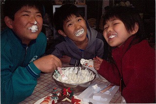 [サンタは いる?]('15/1.24) 毎日頑張って働いている父ちゃんにサンタさんからビッグなプレゼントが届いた。 そう、フリーライド250Rが届いたのだ。 きっと父ちゃんが、寒風吹きすさぶ中、 羊のムフランや冬眠に入ってしまったカメたちに話しかけているのをサンタさんが聞いたのだろう・・。 あれ、どこかで書いた気が・・。 ということで、父ちゃんとフリーライドちゃんのラブラブな新婚生活の報告をしようと思ったのだが、 今回は、少しバイクから離れて、子育ての話だぞ。 クリスマスといえば、サンタさん。 みなさんは、いつまでサンタを信じていましたか? 母ちゃんは、中学生になるまで信じていたそうです。 父ちゃんは? 父ちゃんが育った家は、農家で忙しく、クリスマスどころか、 豆まき(節分)さえもやったことがなかった。 おかげで、サンタさんを信じたこともないし、クリスマスプレゼントを貰ったこともない。 そんな父ちゃんが、中学までサンタさんを信じていた母ちゃんと結婚。 めでたく三人の子どもたちに恵まれた。 母ちゃんは、当然のようにクリスマスが近づくとウキウキし始め、 子どもたちにどんなプレゼントを買おうかと考え始める。 父ちゃんは、「クリスマスプレゼントだよ!」と普通に渡せばいいと思うのだが、 母ちゃんにとっては、クリスマスは一大行事。 そんな味気ないやり方では満足しないらしい。 まず、子どもたちにサンタさんに手紙を書くように仕向ける。 (このへんは、保育士なのでメチャ上手い!) 子どもたちは、もう目をキラキラさせてサンタさんに、 「どうしてそのプレゼントが欲しいのか!」と手紙を書き、 (もちろん、絵や折り紙付き!)それを枕元に置いておく。 クリスマスの朝になるとその手紙がなくなっていることに子どもたちは大騒ぎ。 (もちろん、母ちゃんが夜に回収!) 夜のクリスマス会まで待ちきれずに、朝からハイテンション!の一日が始まる。 ハイテンションのあまり、些細なことで兄弟喧嘩が始まる(笑) まずは、クリスマスツリーだ。 工作が得意なタカが、ツリーを組み立て、みんなで飾り付けをする。 お星様やサンタさんの飾りを誰が付けるかでもめ事が起こる。 夕方になると、ケーキ作り。 生クリームをみんなで代わる代わるかき回し、母ちゃんが買ってきたスポンジケーキに塗りたくる。 この時に生クリームを回す順番や回し方、ショウゴがクリームをなめて3回は争いごとが起きる。 抜け目のない次男のタカは、この間にもサンタさんがプレゼントをどこかに置いてないか? と、テラスや家中を探しまくる。 ![]() (必ず争いごとが起きる生クリーム作り・・) 生クリームを塗れば、今度は飾り付けだ。 この時に、誰がサンタの人形を飾り付けるかでののしり合いが始まる。 そうこうしているうちに、母ちゃんのご馳走が出来上がるとみんなニコニコ。 盛り上がる父ちゃんと三人の子どもたち。 わいわいとご飯を食べている父ちゃんと子どもたちを嬉しそうに眺める母ちゃん。 やっぱり、母ちゃんは、こういう家族で楽しむイベントが大好きなんだな〜。 食べている間にも、ショウゴやタカが、あちこちを探しまくる。 ナホが、突然 窓を開けて「サンタさ〜ん!」と大声で叫ぶ。 しかし、ここからが父ちゃんの大仕事。 子どもたちと母ちゃんが食べている間に、そっと抜け出して、テラスにトイザらスで買ったプレゼントを置く。 子どもたちが、不穏な動きをしている合間を縫ってのことだから、もう神業に近い。 置いたと同時に、鈴をチリリ〜ンと鳴らす。 その音を聞いた子どもたちが、「何か聞こえた!」「サンタさんが来たかもしれない!」 と雪崩を打って外に突っ走る。 すでに、部屋の中にいる父ちゃんが、子どもたちの後に続く。 (マジシャン顔負けの瞬間移動だ!) 子どもたちが、あちこちを探し回ると誰かが「あった〜、プレゼントだ!」と叫ぶ。 そこには、ショウゴ・タカ・ナホ宛のプレゼントが! 三人は、プレゼントを持って小躍りし、やがて暗い空に向かって 「サンタさ〜ん、あ〜り〜が〜と〜〜!!!!!!!」と声を揃えてお礼を言う。 (時には、お礼の踊りが夜のテラスで繰り広げられる・・) 毎年・毎年、これを繰り返すんだな。 ある年は、父ちゃんがプレゼントを置いて、高速移動するときに鉢につまずき大転倒。 そこは、いつもバイクで転倒している父ちゃん。 転んだと同時に回転しながら、すばやく植木の陰に隠れる。 「あ、サンタさんが転んだ!」とショウゴがすごい勢いでサッシを開けて飛び出してくる。 サンタさんを心配するショウゴをよそにプレゼントを探しまくるタカ。 「サンタさん、怪我しなかったかね〜」とナホが母ちゃんに聞く。 「大丈夫よ、うちにくるサンタさんは、きっと転ぶのに慣れているから」と母ちゃん。 「サンタさん、きっと急いでいたんだよ!」と何事もなかったかのように父ちゃんが言う。 そして、いつものように夜空に向かって「サンタさ〜ん、ありがと〜〜〜!!!」と叫ぶ子どもたち。 