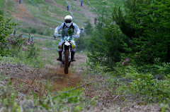 [クマのプーさん?]('16/7.27) (ニュースより) 5月21、22日、秋田県内でタケノコ採りのため山に入った男性2人が死亡しているのが見つかった。 いずれもツキノワグマに襲われたとみられている。 今月は他に岩手、山形、長野県などで子連れのクマの目撃情報があり、けが人も出た。 岩手県で40年以上狩猟を続け、何度もツキノワグマに遭遇した経験を持つ 大日本猟友会の佐々木洋平会長(74)は 「子どもを連れたクマは特に警戒心が強く、猟師でも手に負えない時がある」と警鐘を鳴らす。 ツキノワグマの体長は1~1・5メートル程度だが、「一般人が襲われたらひとたまりもない」という。 人ごとのように聞いていたニュース。 まさか・・・ JNCC第5戦「ワイルドボア鈴蘭」の一週間前。 父ちゃんたちは、いなべモータースポーツランドにいた。 そして、そこには、なんとタカの姿も! タカが、こんなにちゃんと練習するのは、今年になって初めてではないだろうか? いつもレースを2時間ぐらい走って、やっとバイクの乗り方を思い出すタカ。 その頃には、体力も精神力も限界近くなっていて、広島では「神の声が聞こえた!」と言い出す始末。 そんなタカが、レース一週間前に練習できたのだから、もう絶好調! もちろん、バイクではないぞ。 貯金をすっかり使い果たしているタカが、一回や二回バイクに乗っただけでは、速くはならない(笑) そうなのだ、口なのだ。 昔から「口先大魔王!」と言われていただけあって、バイクに乗れるうれしさと鈴蘭への期待が重なって 「ついにレース一週間前に練習が出来た。鈴蘭では、恐ろしいことが起きるぞ!」と言いふらしている。 その姿は、まるで“予言者”のようだった。 だいたい「恐ろしいことが起きる!」と言っているヤツに限って 「恐ろしいことが起きたことなどないのだ!→(18)恐ろしいことが起きる・・ 「もうお前には、貯金がないんだぞ!」と言ってやりたかったが、 あまりにも嬉しそうにバイクに乗っているものだから、口を挟むことが出来なかった。 「これが、今年最後のレースになるからどんな恐ろしいことが起きるのかワクワクするぜ!」とタカ。 へ? 今年最後のレース?? もう、レースに出られないの??? 「そうだぞ、じぃさん。もう、日程が全部埋まってしまっているんだ」とタカ。 まだ、シーズンなかばの6月で最後のレースか・・。 恐ろしいことは起きないだろうが・・、少しでもタカらしく楽しむことが出来たら良いな~。 ![]() (鈴蘭の一週間前にイナベで練習。やっぱり三人そろうと楽しいな!) そして、一週間後の土曜日(6/11)、父ちゃんとショウゴは、鈴蘭高原にいた。 この鈴蘭のコースは、下のパドックからでも見渡せるところが多い。 といっても、バイクが豆粒のようにしか見えないが・・。 とっても暑い日だったので、朝イチで下見に出かける。 コースの前半は、ほとんどが登り。 下見をしていても休んでは登り、休んでは登り・・という感じ。 例年なら登りの難所となるはずのガレクライムが、FUNではなくなってしまい、COMPが下りで使うことになっていた。 「テンちゃん号なら、みんなを抜ける場所だったのに!」と残念がる父ちゃん。 ![]() (コースの上からの景色。下の方に見えるのが、本部やパドック) ![]() (今回からは、爺が岳ラウンドのCOMPショートカット問題でコーナーごとに大きな番号が付きました。 コースマップを見てもどこのコーナーか一目で分かります!) ![]() ![]() (ショウゴが歩いているのがCOMPだけで使うガレの下り。 父ちゃん+テンちゃん号ならイケイケですが、ショウゴは苦手・・) 今回のFUNのコースは、難所が少なくなった他は、そんなに変わっているところもなく、 相変わらずの登りとクネクネクネしながらキャンバーになっている坂を下りる。 エンジンブレーキが使えない2サイクルには、苦しいコース。 (足のブレーキでは、繊細なブレーキングが出来ないんだもの!) ああ、こんな時にリヤハンドブレーキがあれば!! (ケンジ監督は、下りは軽い2サイクルの方が有利と言うが・・) FUNクラスは、クネクネ・キャンバー坂を延々と下っていくが、COMPクラスは、急斜面を一直線に下っていく。 途中からショウゴと分かれて別々に下見をしていた。 父ちゃんが、クネクネ坂の終わりの方に来た頃、ショウゴから電話があった。 「じぃさん、今オレの目の前を小熊が歩いて行った!」 へ? 「恐ろしいことが起きる!」という次男に「クマがいた!」という長男。 ついでに“ダップン父ちゃん”・・ 父ちゃん一家は、大丈夫だろうか? 「黒い犬でも見間違えたんじゃないの?」 大きさは、犬よりもちょっと大きいくらいだったが、手足がスゴイ太かった! あれは、間違いなくクマだ!」とショウゴが真剣に言う。 秋田県のニュースが頭をよぎった。 「小熊がいたってことは、母熊が近くにいるぞ。急いで降りてこい!」 朝イチの下見だったので、父ちゃんたち以外で下見をしている人は少ない。 しかし、これから多くの人がこの辺にも来るだろう。 急