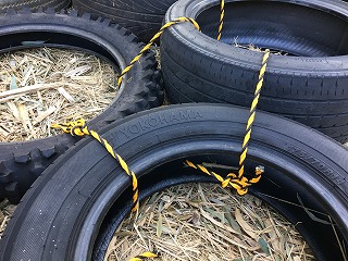 (タイヤを集めまくって作ったロックンロールタイヤリバー。タイヤなので転んでも安全です!)