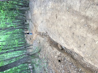 途中まで上手く登れたが、木の根っ子に弾かれて斜面を転げ落ちる。