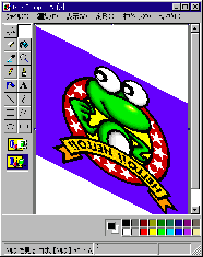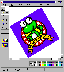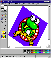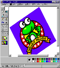 こんなふうに画像を回転させたいと思うことはよくあります.最近のグラフィックソフトはどれも回転機能がついていて,こんな面倒な作業をしなくてもすむ様になりました.でもこれらの回転機能を使うと,数色で作った絵も色数が増えてしまうので都合が悪い場合もあります.そんなときに使ってはいかがでしょうか?
