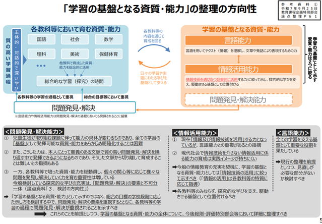 【資料2】検討資料(5)学習の基盤となる資質・能力 (PDF:1.5MB)