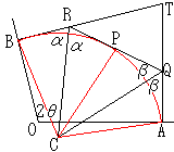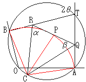 したがって,点Cは4点OATBを通る円周の弧AOB上のAC=CBとなる点である。
