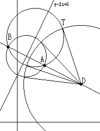 円の中心はABの垂直2等分線 y=2x+5 上にあり,
