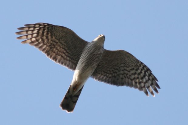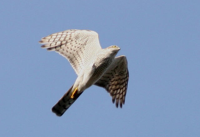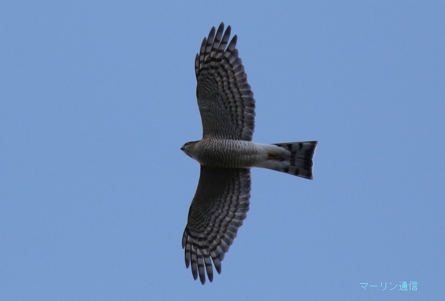 羽ばたきやシルエットはまさにハイタカのそれでしたが、初列風切の翼先突出数が6枚確認できなかったら、ツミと間違えていたのかもしれません。ハイタカは実におもしろいです。