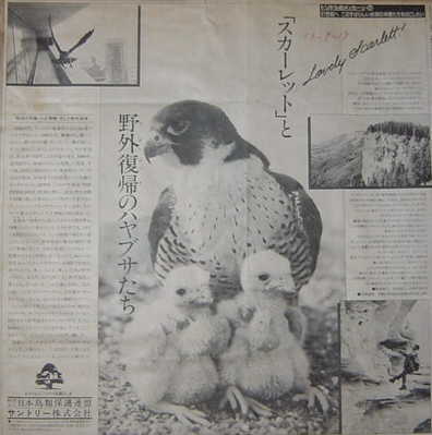 みなさん、「ハヤブサ基金」をご存じですか。1970年にコーネルCornell大学のトム・ケイドTom J. Cade博士らによって創設されたアメリカの猛禽類保護団体です。北アメリカのハヤブサPeregrine Falcon の繁殖、野外復帰、個体数の増加等の大成果で有名ですので、下の写真にある広告やこれに関連する記事を読まれた方もあるかと思います。