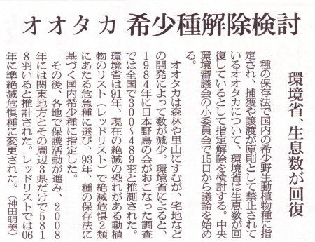 〇 「オオタカは、自然を守るシンボルになっている」とか、「自然保護運動がオオタカに頼りすぎている」などという件については、これは、オオタカにそれだけの価値があるわけですから、私は、今のままの姿勢を貫いていけばよいと思います。