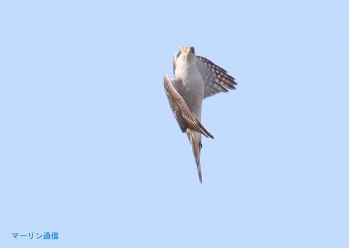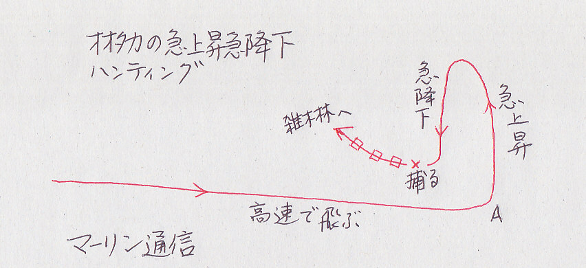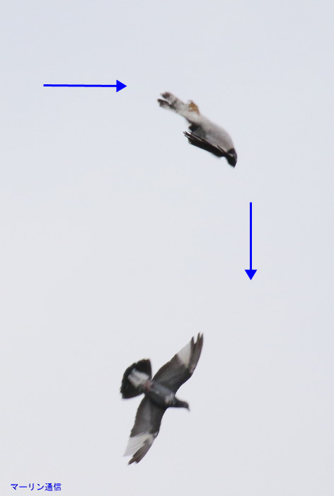 このような観察は、今までも何度かこの「マーリン通信」に書いてきました。追われる小鳥たちはきまって異常な飛び方です。