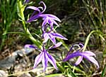 「散策路図」の5番、16番付近ではサワギキョウが咲いています。 花をよく見ると、その変わった形に驚かさせます。また、落ち着いた紫色も素敵ですね。 観察には、木道近くで見られる5番付近が適しています。 |