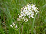 「散策路図」の13番付近では、イワショウブが咲き始めました。 これから徐々に花数は増え、湿原のあちらこちらで楽しめるようになります。 ムシトリグサの一名があるよう、花茎には粘りがあります。 |
