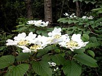 「散策路図」の1番、3番付近ではヤブデマリが見頃の状態です。 真っ白な飾り花が新緑の中で一際目を引きます。 また、真っ赤な実をつける時期も素敵ですので見ておきたいものです。 |
