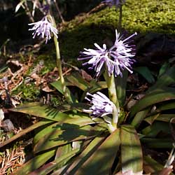 「散策路図」の3番を過ぎ少し山側へ向かった野沢原生林付近では、ショウジョウバカマの花が顔を出し始めました。 この花が咲き始めると春の訪れを感じます。 <P.11> |