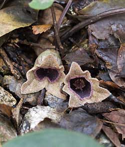 湿原周辺の林ではイワタカンアオイが咲いています。 |