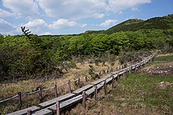湿原周辺の雑木林の縁では、オオバウマノスズクサが咲いています。 独特な形でユニークです。和名は、果実の形が馬に付ける鈴に似ることからついています。 <P.33> |