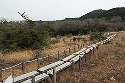 湿原周辺の林中では、ヒメカンアオイが咲いています。 花は落ち葉に埋もれるように咲くので、落ち葉を掻き分けて花を観察することになります。 葦毛で見られるカンアオイは、このヒメカンアオイの他に、イワタカンアオイがあります。 <P.98> |
