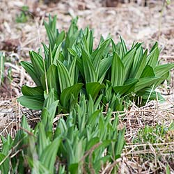 湿原内や周辺の沢沿いでは、ミカワバイケイソウが発芽しています。 |