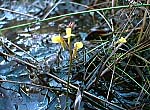 真夏が盛りのミミカキグサですが、花がまだ楽しめます。 この時期に咲くミミカキグサは高さ3から4cmと極端に背が低いですが、花はひとまわり大きく、色も鮮やかな気がします。 花は例年12月上旬の強い霜が降りるまで咲いています。 |
